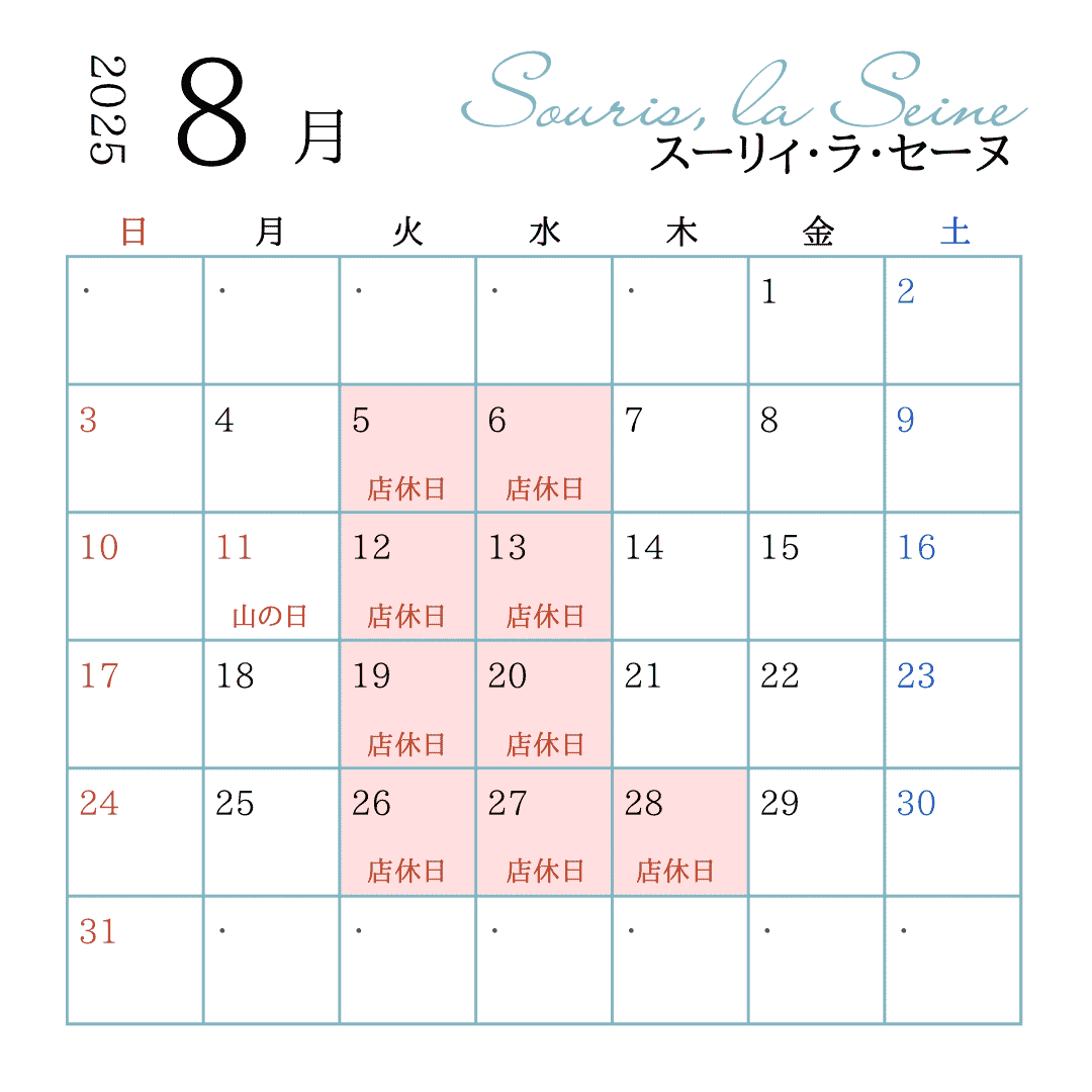 スーリィ・ラ・セーヌへ電話しますか? 営業時間:平日11:00〜19:00 土日祝10:00〜18:00 定休日:火曜日・水曜日(臨時休業あり)