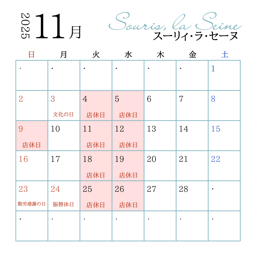 スーリィ・ラ・セーヌへ電話しますか? 営業時間:平日11:00〜19:00 土日祝10:00〜18:00 定休日:火曜日・水曜日(臨時休業あり)